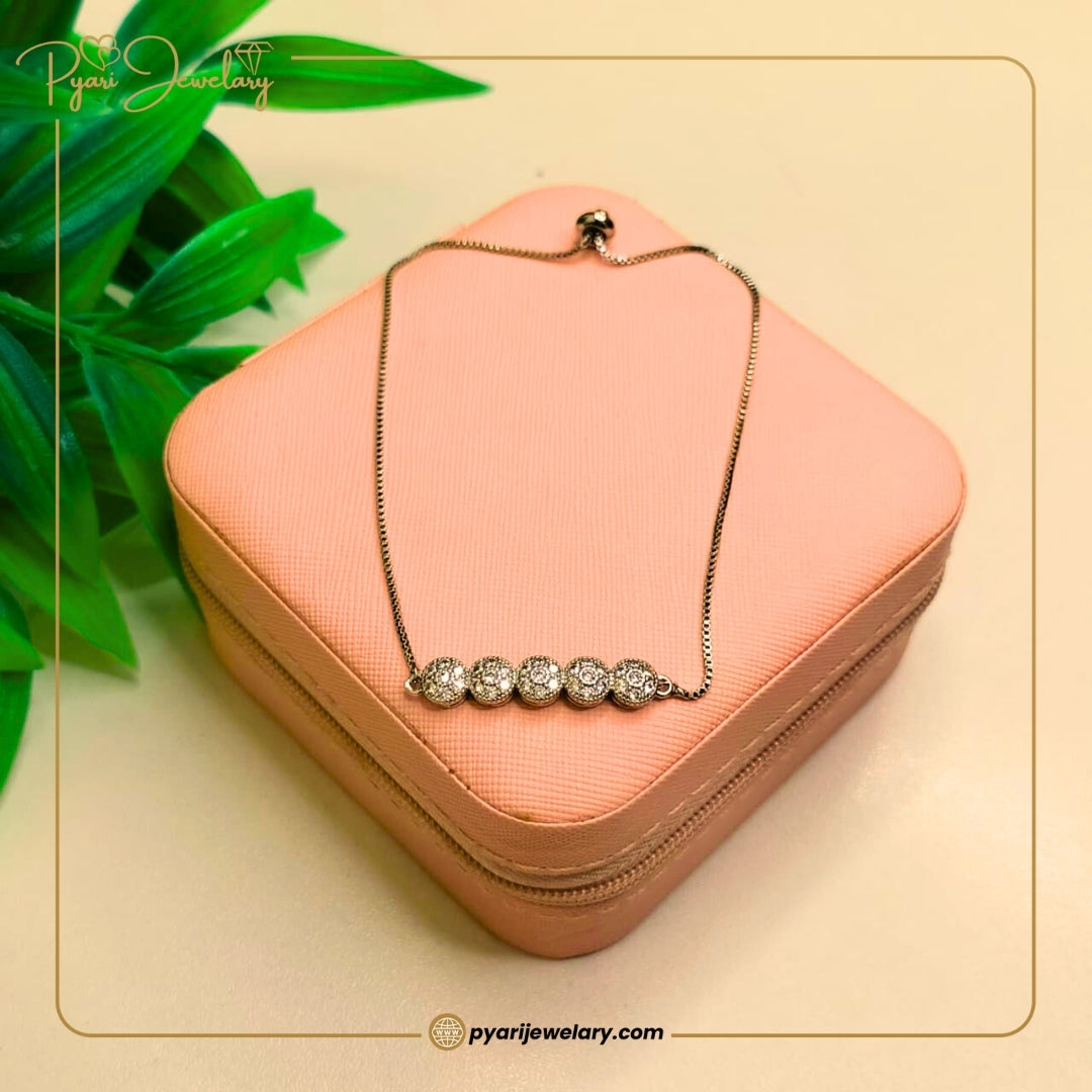 Silver-Plated Sparkling Oval Chain Bracelet | Premium Artificial Jewelry for Women
