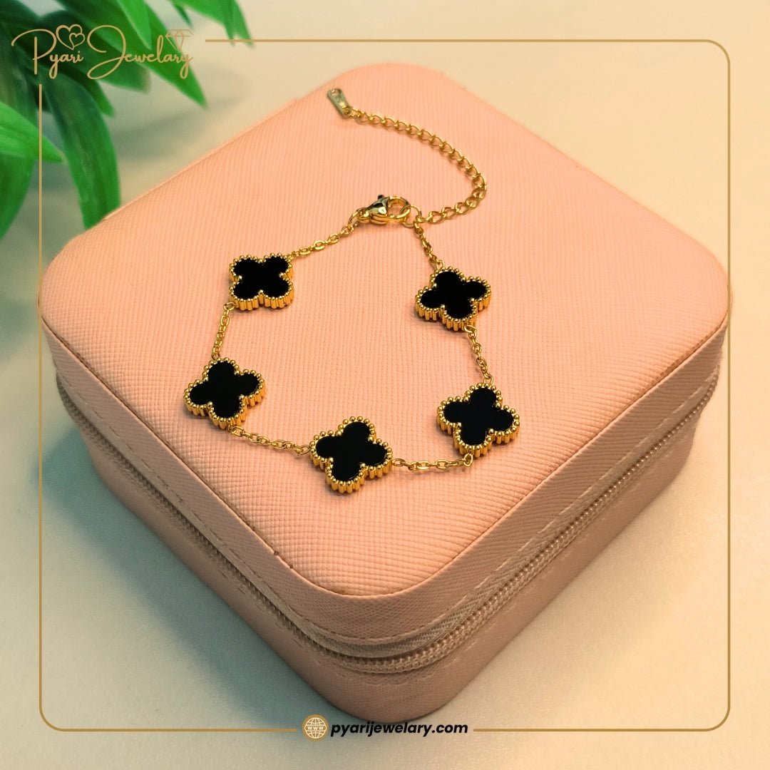 Elegant Black & White Clover Charm Bracelet | Premium Artificial Jewelry for Women – Pyaari Jewellery