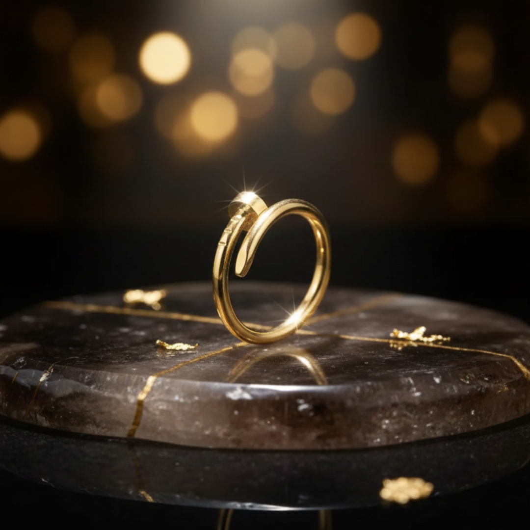 Gold Cutwork Designer Ring for Women – Elegant Stainless Steel Finger Ring