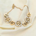 Chic Circle Motif Design: Multiple gold circular charms with intricate cut-out detailing for a modern, luxurious look.