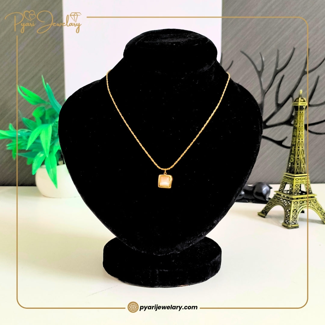 Embrace simplicity with sophistication with the Pyari Jewellery Gold Square Pendant Necklace — a timeless piece for women who adore understated elegance. Featuring a sleek gold-tone chain and a refined square charm with a soft pearlescent center, this necklace adds a perfect touch of grace to any outfit, casual or formal.